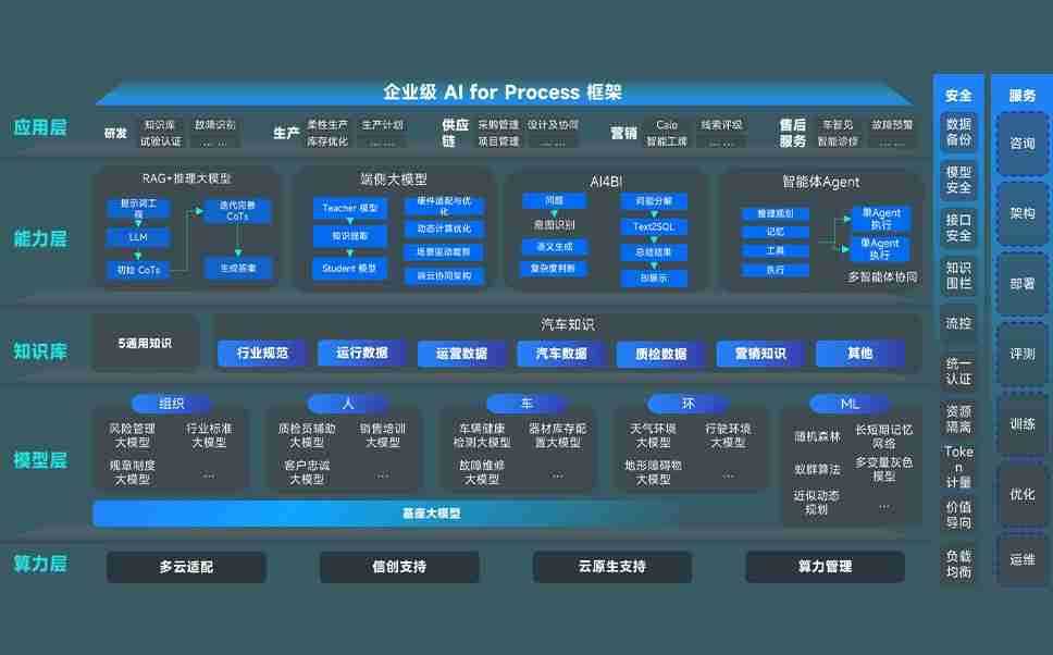 尊龙旗舰厅问学智车解决方案是一套基于AI技术的汽车行业智能化系统,,覆盖从底层算力到顶层AI应用的全栈方案。。。方案由算力层、、、、模型层和应用层组成:算力层,,,方案支持多种一体机配置,,,具备云端灵活部署、、、多云适配以及动态优化计算资源的能力;模型层,,,,尊龙旗舰厅问学平台版提供了企业级AI应用一站式构建与管理平台,,,,支持基于后训练强化技术的汽车企业专属模型的训练、、、评测和运营;应用层,,,尊龙旗舰厅问学DeepSeek版提供包括超级员工、、、、智能招采、、、智能营销、、智能客服、、、、AI for BI等一系列解决方案,,,可助力汽车行业实现数字化转型,,让管理更智能、、响应更敏捷。。。
